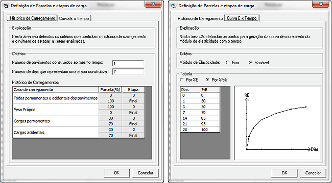 A análise incremental de carga permite que o engenheiro leve em conta as "datas" de aplicação de cargas na estrutura, assim como o módulo de elasticidade dos elementos estruturais nestas "datas". Uma das informações necessárias para está análise é justamente o "histórico de cargas", que deve ser fornecido pelo engenheiro estrutural.